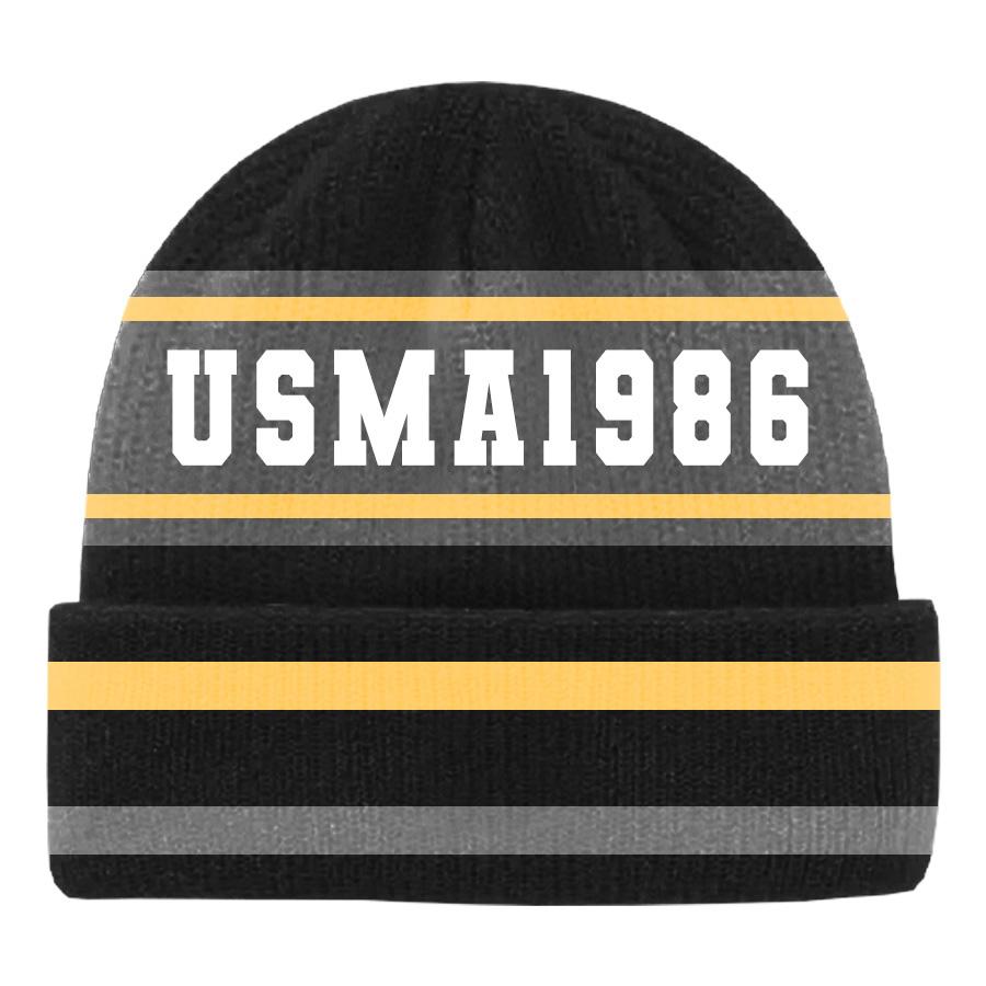 Black with gold and gray stripes on the cuff with the addition of USMA 1986 on both sides.