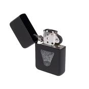 Oil flip-top ligher in matte black with laser engraved class crest.
