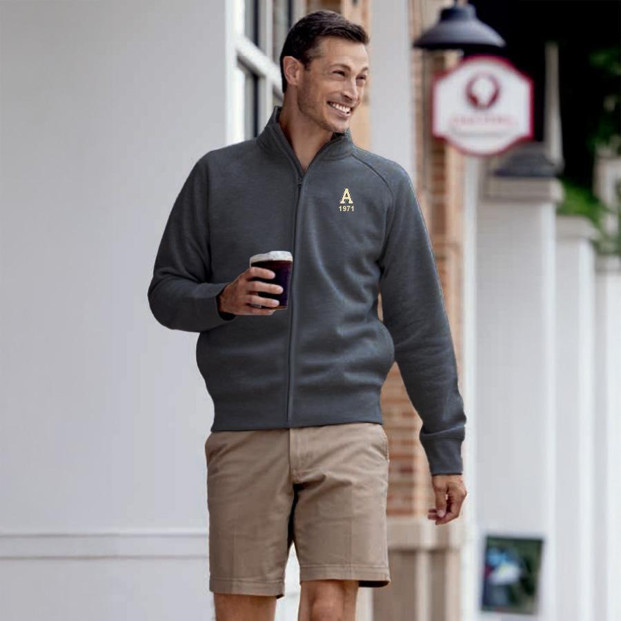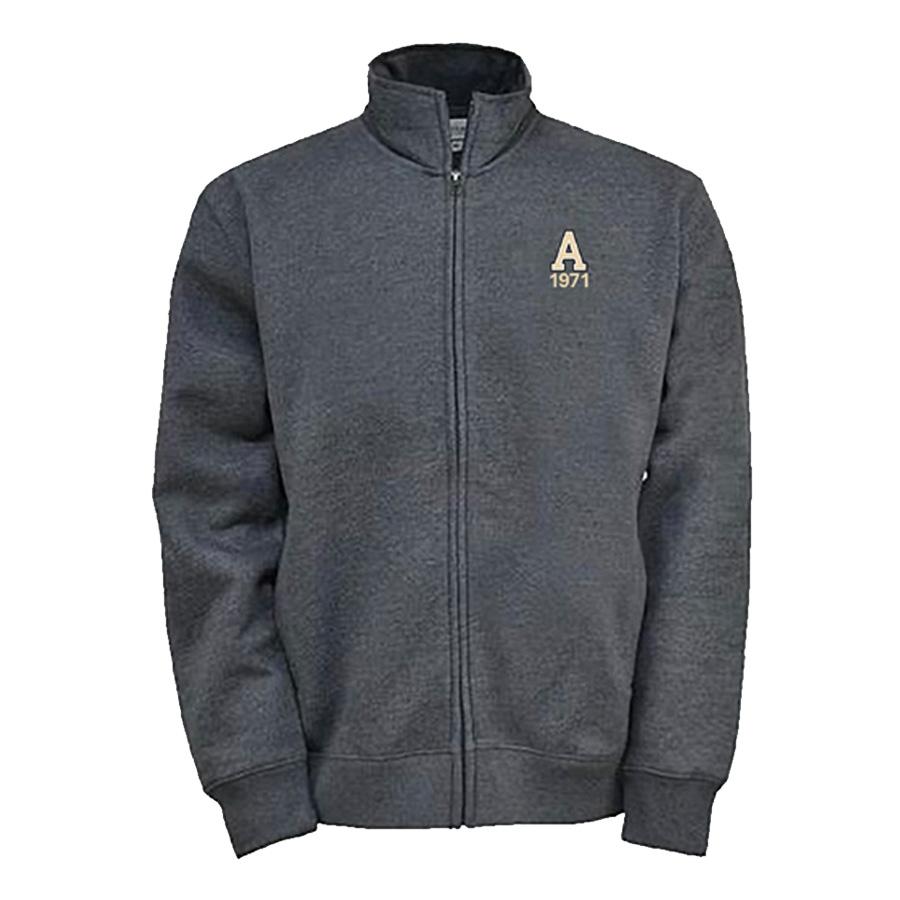 A medium weight full zip - finally without the hood! Cotton/poly blend with a soft feel and easy machine wash and dry care. Welted pockets add to the clean lines of this new favorite. Art is the Classic A over 1971 on the left chest. Sizes XS-3XL. Minimum needed to place this order is 48 pcs sold, combined with the quarter zip fleece style.