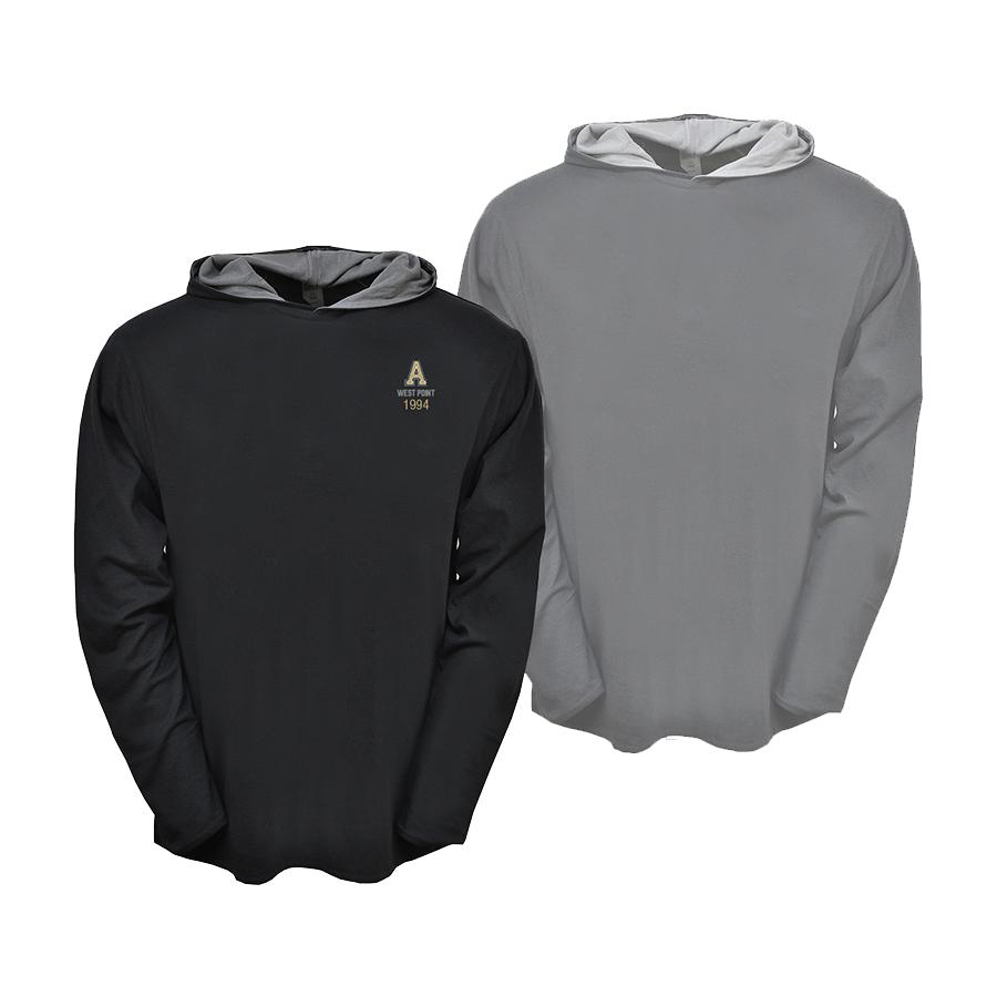 A hoodie t-shirt with a hidden trick! Reversible from black with class art to gray without any art. Cotton blend with a substantial fall jersey-like weight. Unisex sizes XS-3XL.