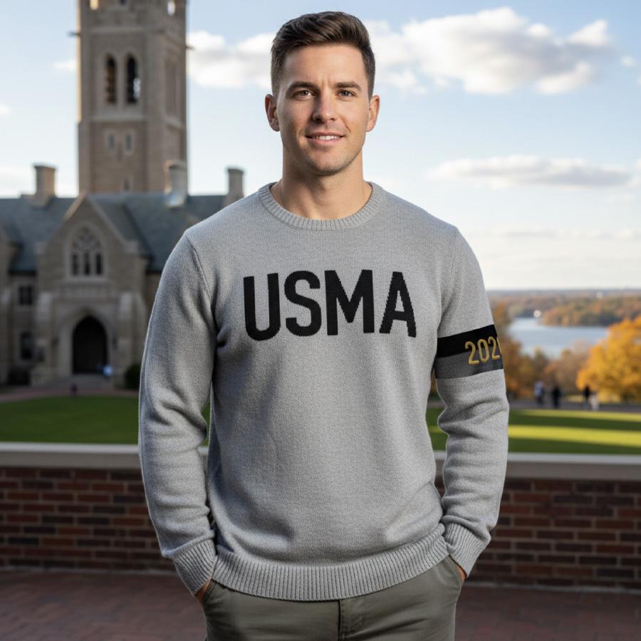 Our custom class arm band sweater is a fun take on an old standing West Point tradition - no safety pins needed!