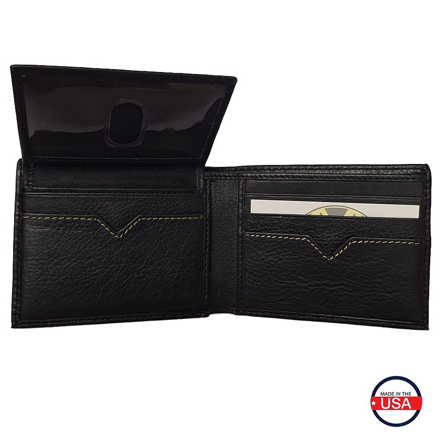 Our bifold wallet is great for the West Point Grad or the West Point Fan. Embellished with the Athletic Shield, this wallet is made of full grain antique-milled leather - soft to the touch but tough enough for the roughest of conditions. Thick contrast stitching for maximum durability and a great finish. Made in the USA.