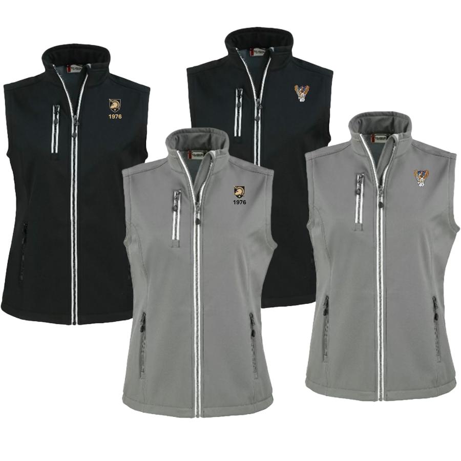A ladies' softshell,lightweight vest in a recycled polyester. Every day wear in a sporty, water-resistant style. Inner lining is a soft microfleece. Zip pockets at chest and side pockets on-seam. Contrasting zippers. Your choice of class crest or Athletic Shield over 1976. Sizes XS-3XL. Also available in a jacket (R48876).
