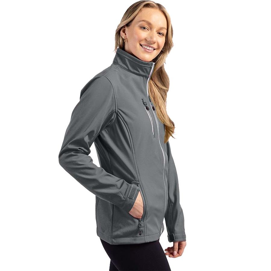 A softshell jacket perfect for spring. A recycled polyester fabric with just enough Spandex to give a little stretch. Water resistant, breathable fabric with a microfleece, brushed lining. Elastic cuff hem, right zippered chest pocket and contrasting zippers, as well as side pocket zippers. No PVCs or PFAS chemicals in this eco friendly jacket. Also available in a lightweight vest (R488991). Sizes XS-3XL.