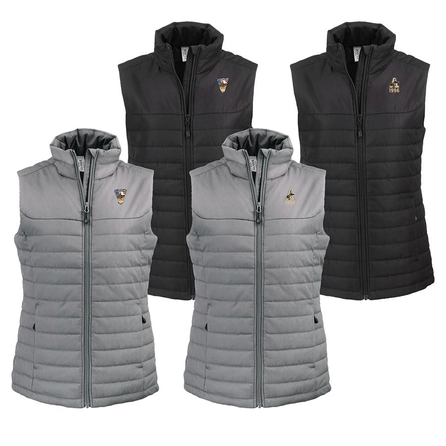 A sporty everday channel style vest made from eco-friendly recycled fabrics. Water repellant with secure hand pockets and an inside chest pocket. Lightweight and warm without all the bulk. Machine wash. Sizes XS-3XL.
