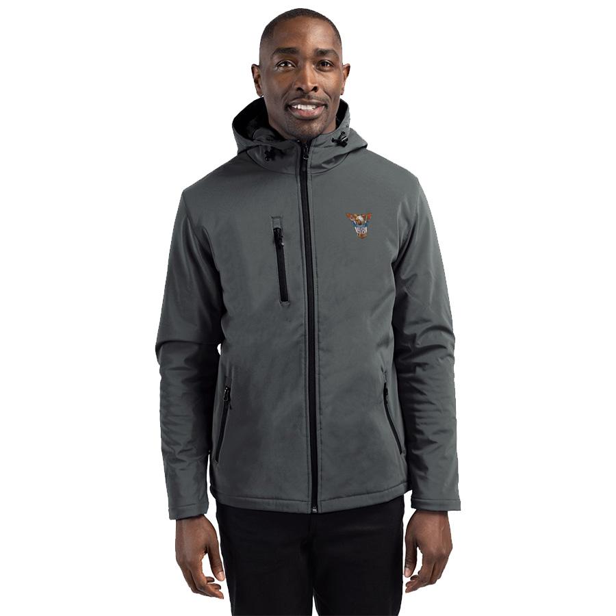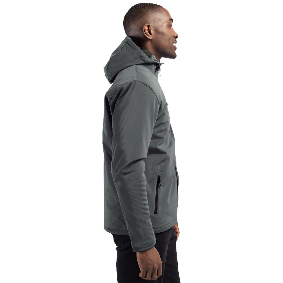 Hooded style with a moisture wicking liner and a water resistant outer shell.