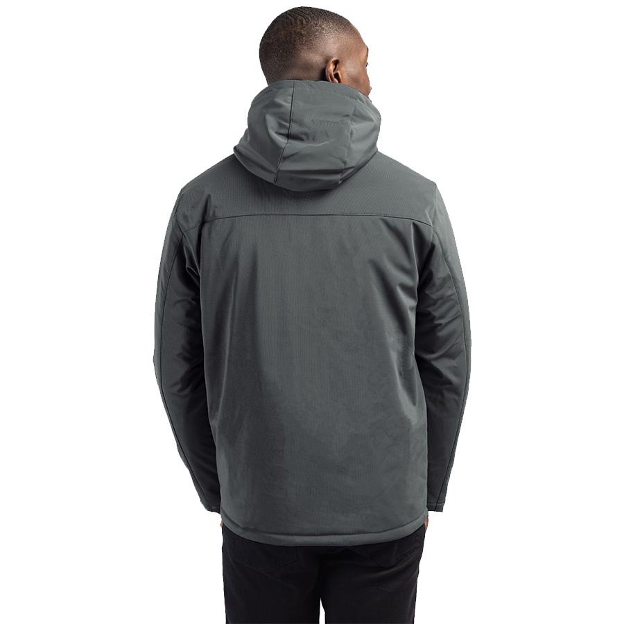 Hooded style with a moisture wicking liner and a water resistant outer shell.