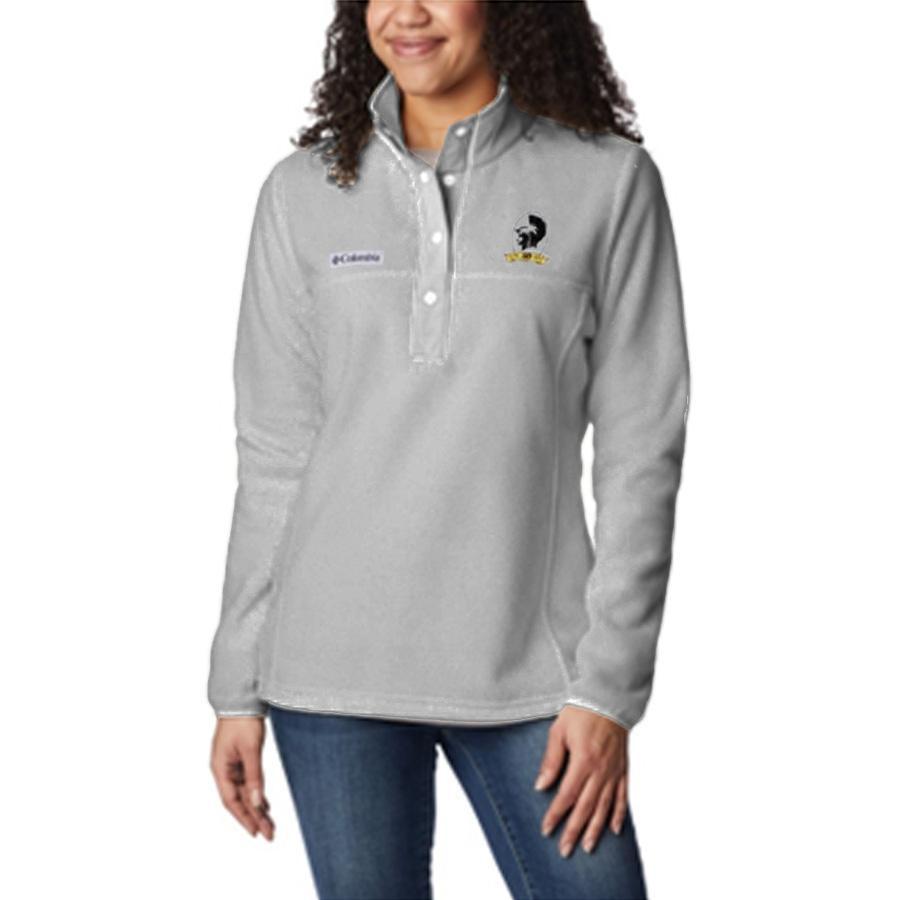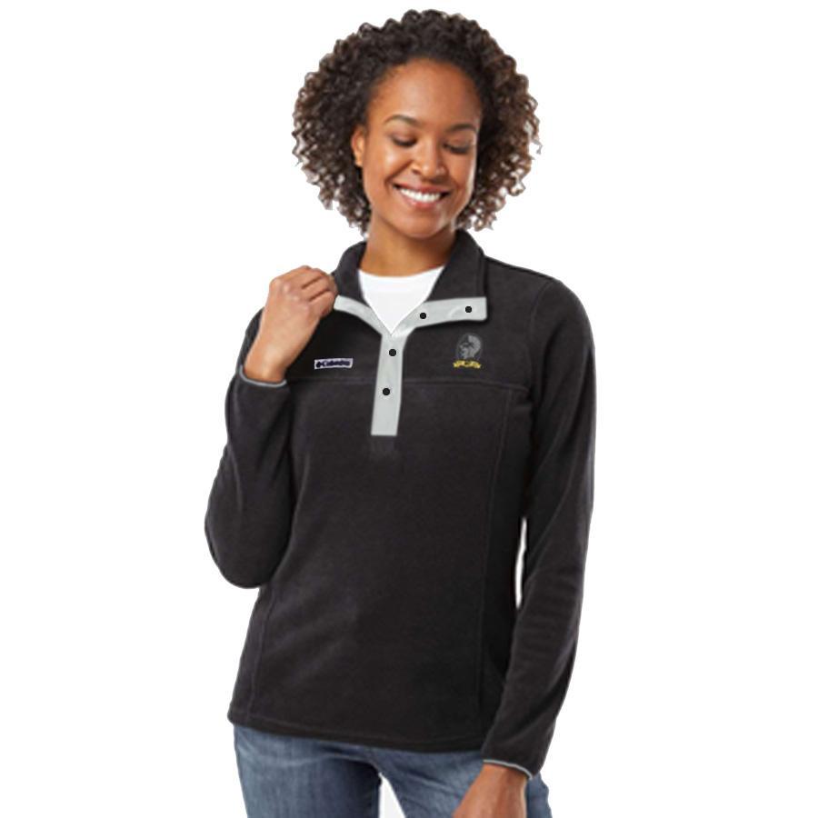 For those with an active lifestyle that like a casual, sporty look, this pullover is for you. Machine wash polyester fleece that is both lightweight and warm in the traditional Columbia fleece fabric that made them so famous. The snap front allows for quick adjustment when hiking or even just sitting in the stands watching your favorite Army sport. Tipped binding at cuff and collar for a finished look. Sizes XS-Xl in a style adorned with the WPW50 Athena and celebratory banner. Minimum quantity needed to place this order is 36 pc sold. If 36 pcs with Athena art are not sold, this will be available in Spring 26 with Academy art - specific art tbd.