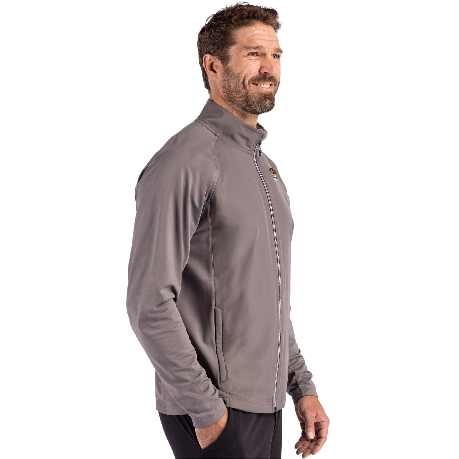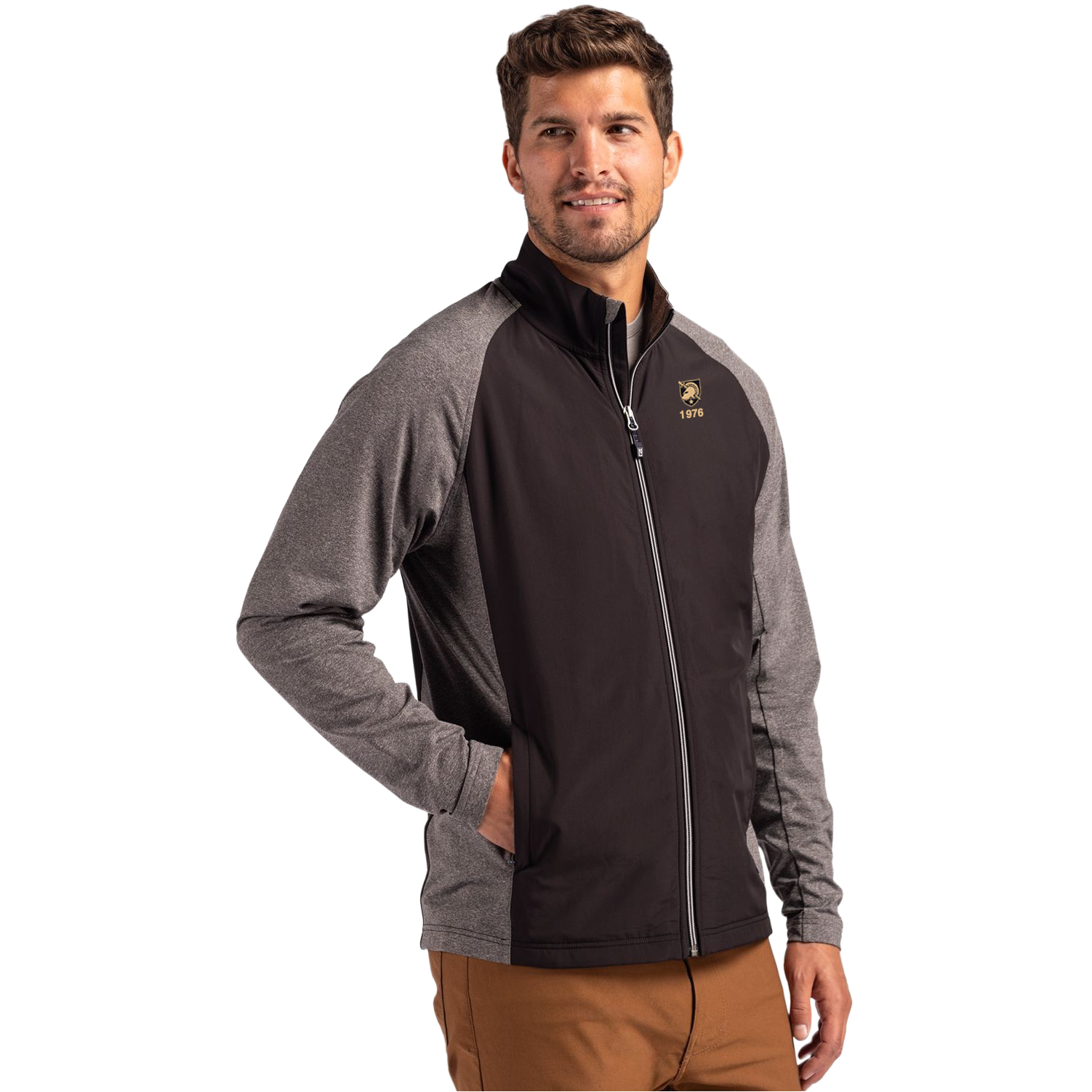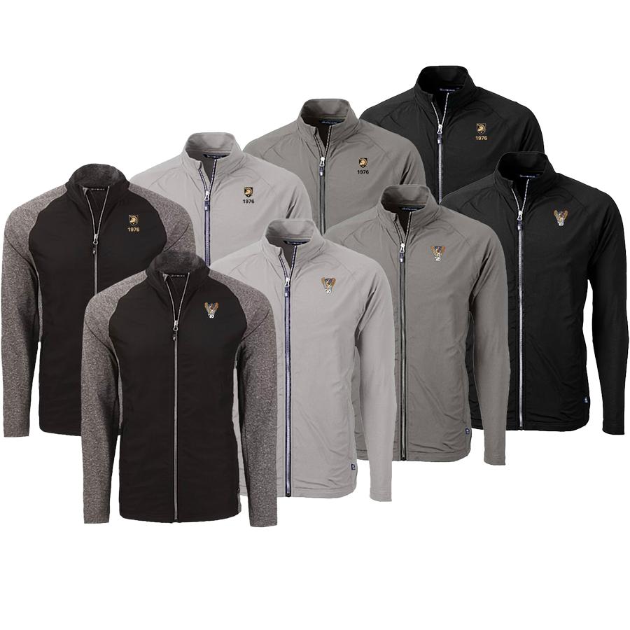 Your new favorite athletic tagalong jacket. Perfect for golf, travel or leisure wear. Eco knit stretch style made from 100% recycled Polyester. Shell overlay on front and back body for wind resistance. Lightweight and warm in a machine wash style. Available in a variety of solid colors and one two-tone colorway where the body is black and the arms are heathered gray. Art is your choice of the Athletic Shield over 1976 or your class crest. Sizes S-3XL.