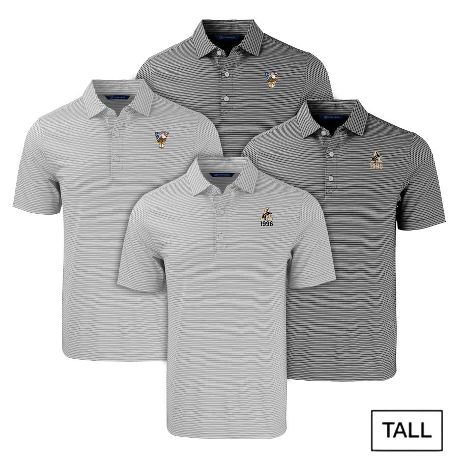 A modern polo with a double stripe in tall sizes. Moisture wicking to keep you cool and just enough Spandex to give this a nice 4-way stretch. UPF sun protection in a machine washable style. Your choice of class crest or Kicking Mule over 1996. Tall sizes LT-3XLT.