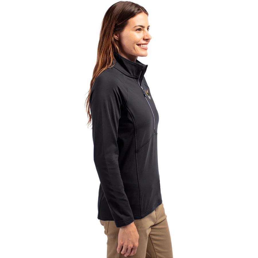 Comfortable and eco-friendly recycled polyester blended with Spandex for a nice stretch. Brushed inner lining makes this half zip warm and soft. Raglan sleeves with a novelty half zipper in a ladies' fit. The art is the 2015 Class Crest on left chest.