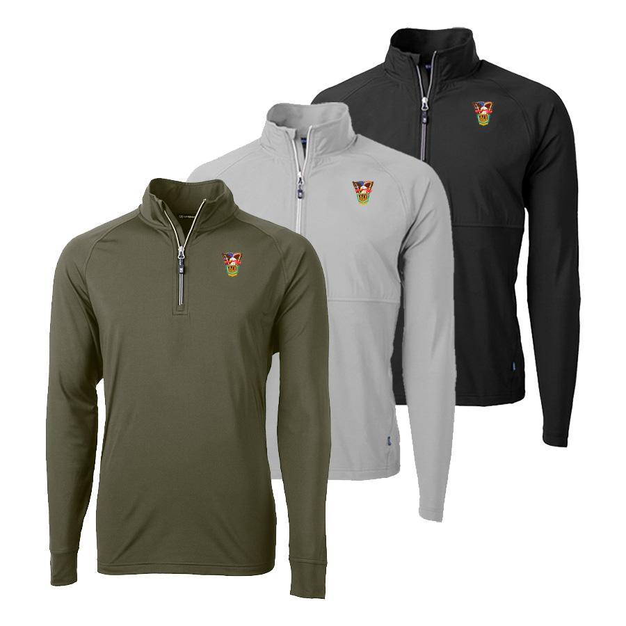 Comfortable, lightweight eco-friendly recycled poly/spandex with plenty of stretch for leisure wear. Raglan sleeves with a novelty stitch zipper and locker loop. Features the 2014 Crest on left chest. Machine wash and dry. Sizes S-3XL.