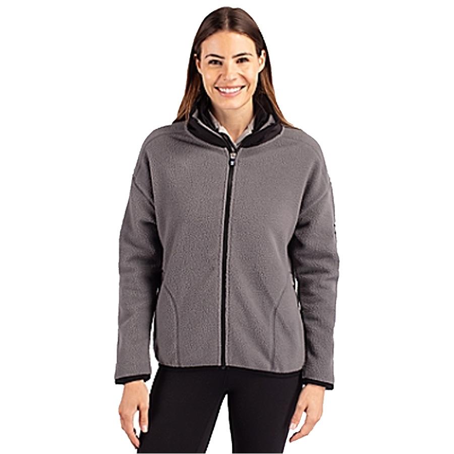 Full size fleece full zip for those that like to hike or other outdoor activities. Engineered for exceptional warmth with a brushed fleece inside that is cozy and breathable. Made from recycled polyester. Full zip closure and side zip pockets in a relaxed fit. Black is solid while gray has black trim. Machine wash style. Sizes S-3XL which equates to sizes 4-22. Minimum needed to place order is 24 sold mixed with the other CB women's sizes with same art.