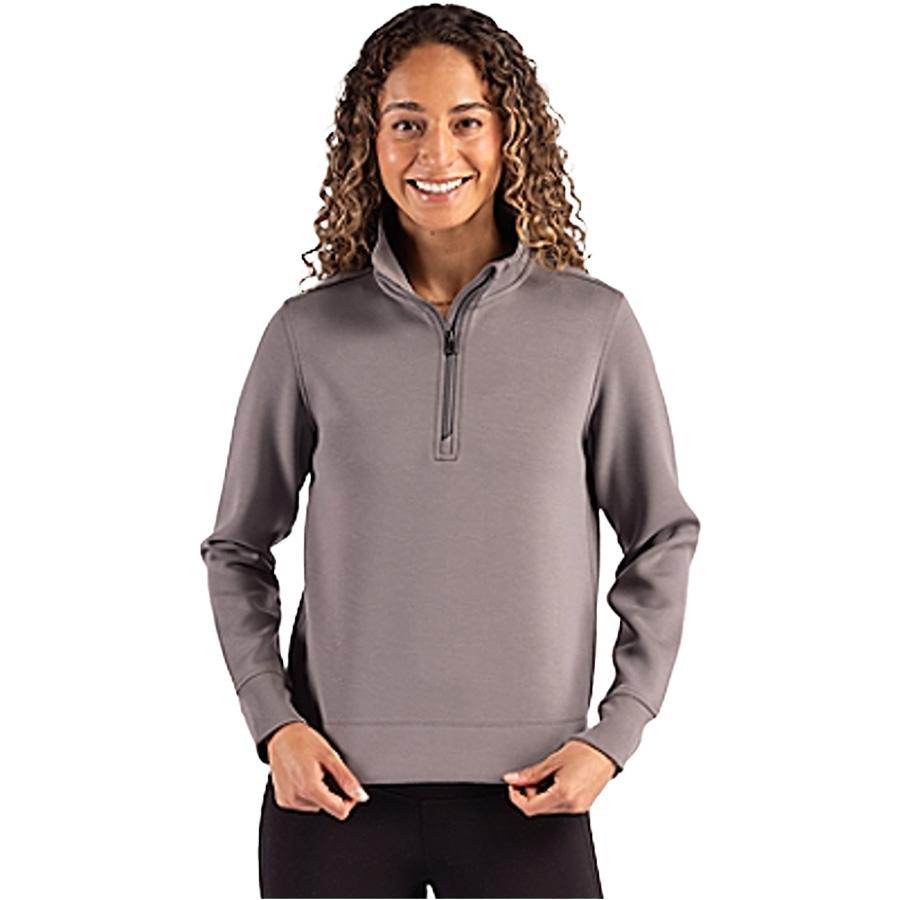 Full size quarter zip destined to be your new favorite. Midweight fabric that is smooth and luxurious in a modern style. Made from a recycled polyester/Spandex/rayon blend. Water-repellent to shield you in drizzle or a light rain in an amazingly soft style. Flattering side vents with an open bottom in a regular fit. Sizes S-3XL which equates to sizes 4-22. Minimum needed to place order is 24 sold mixed with the other CB women's sizes with same art.