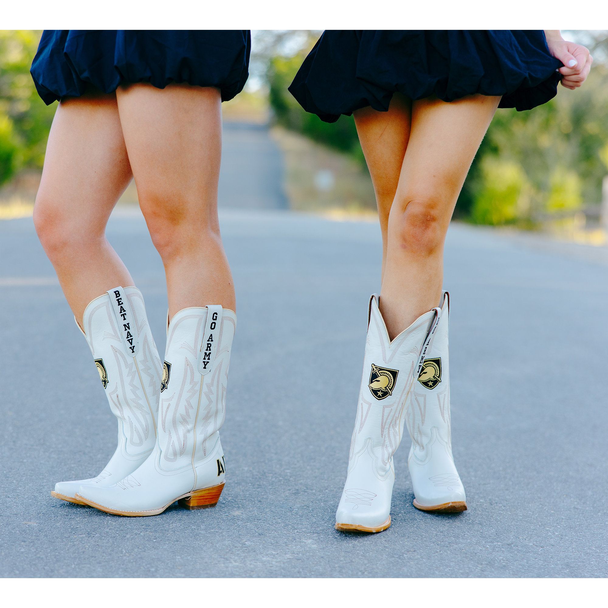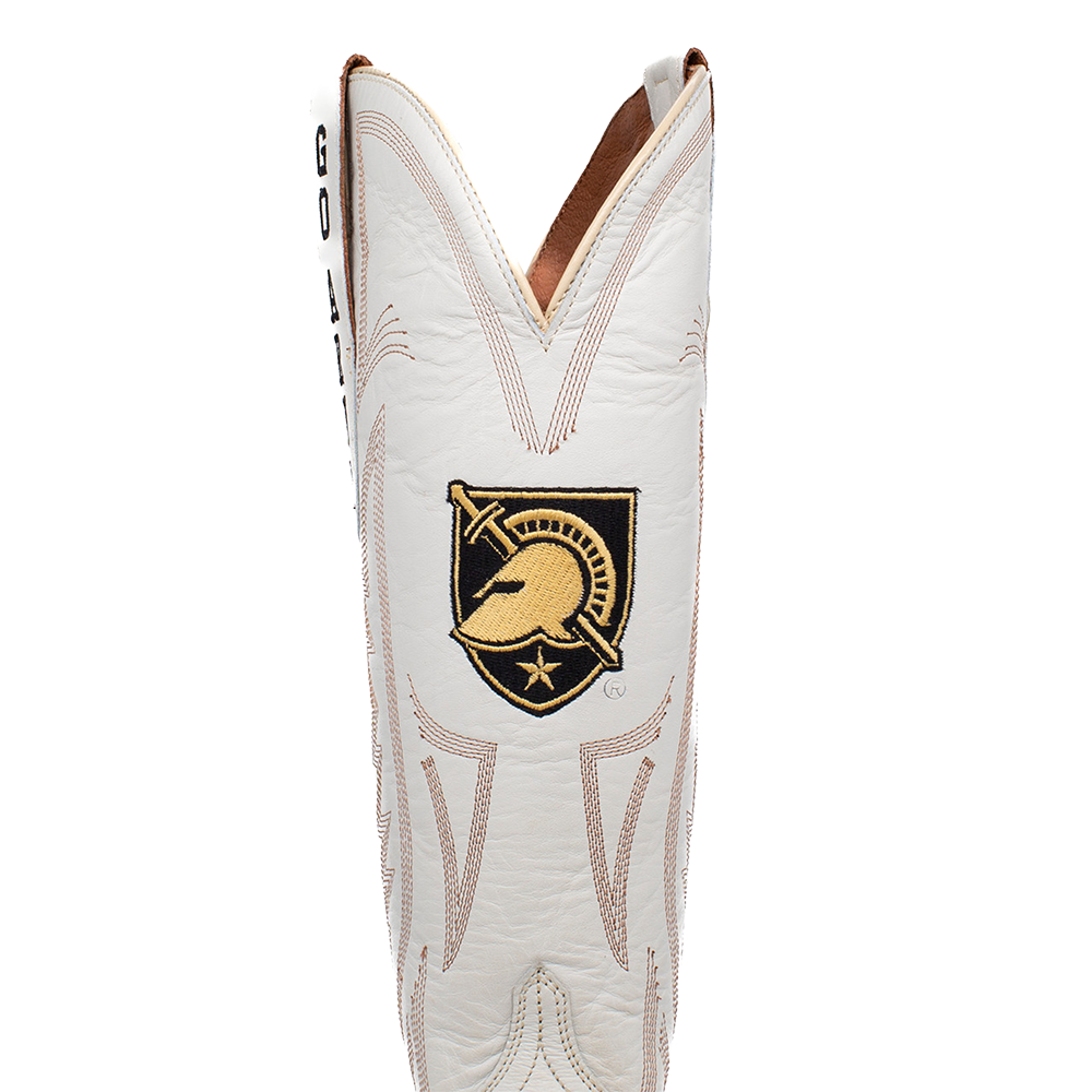 Subtle, classic western embroidery on the toe and shaft with multiple embroidery spots featuring Go Army, Beat Navy and the Athletic Shield.