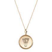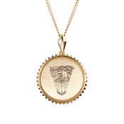 The popular and petite Kyle Cavan Sunburst style with the 1996 Crest. Cavan Gold sunburst on a cable chain is gold plate over Sterling silver. Also available in silver (R70196).