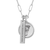 Made exclusively for the Class of 1996 this vertical bar with sunburst crest is a beautiful reminder of your Rockbound Highland Home. Includes an 18 inch link chain. Made of Sterling Silver. Sunburst has class crest while the vertical bar has the 1996 motto. Also available in Cavan Gold which is gold plate over Sterling Silver (R700G96).