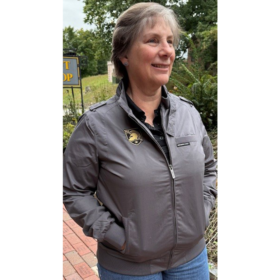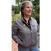This ladies fitted bomber style has a zip closure with double snap iconic throat latch, signature shoulder epaulettes and a trademark front logo pocket.