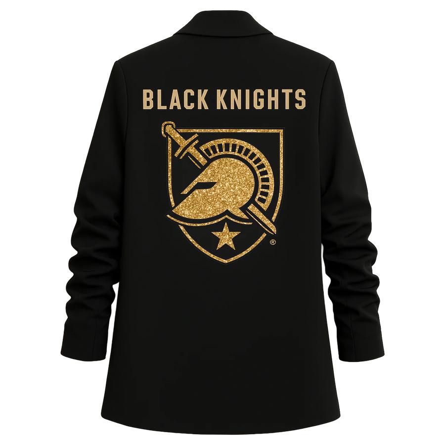A wear anywhere or everywhere ladies' blazer with a gorgeous rhinestone Athletic Shield on back.