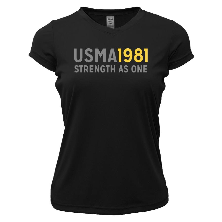 A ladies' performance V-neck style t-shirt with a 1981 message.