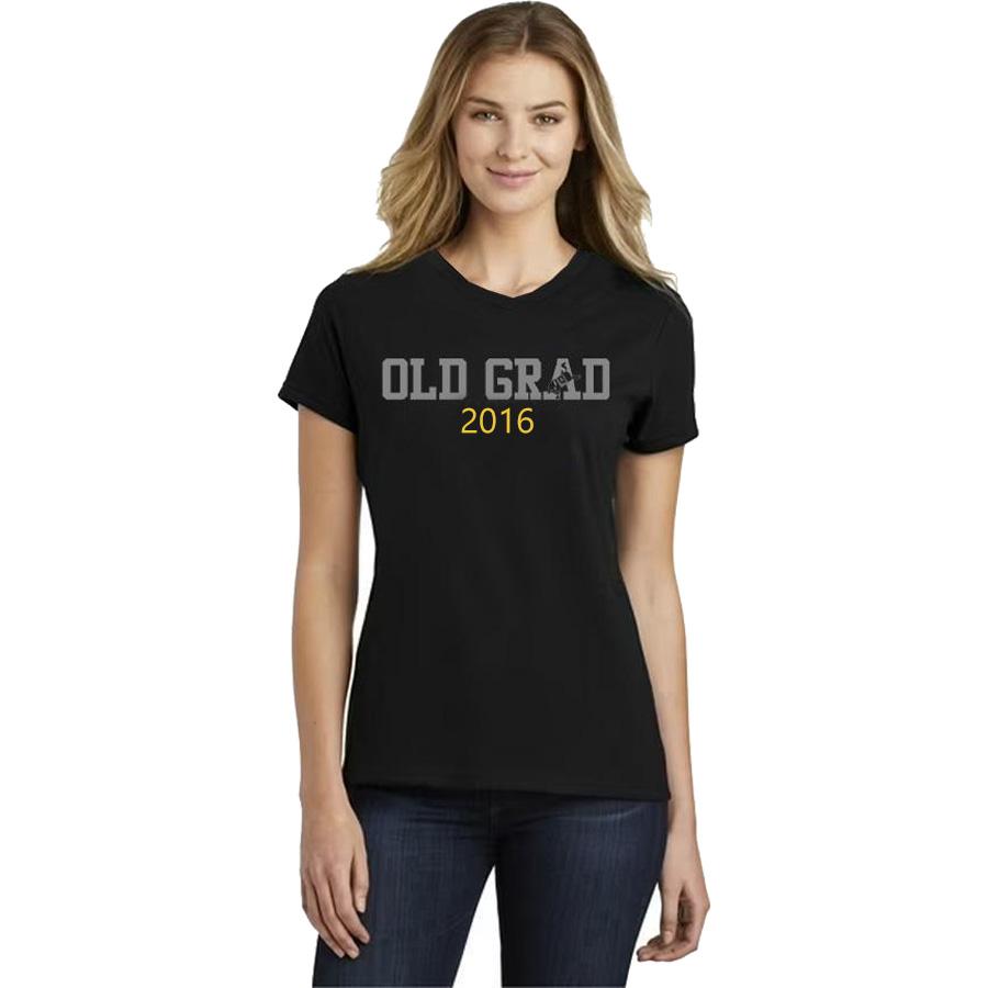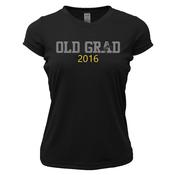 A ladies' performance V-neck style t-shirt in an Old Grad style.