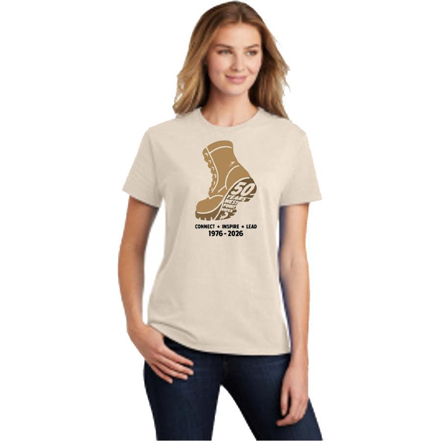 A design especially for the 50th Anniversary of Women at West Point Celebration. The t-shirt is a soft, 100% combed cotton jersey in a beige/Vanilla color with a vintage look. Rib knit collar in a garment dyed finish. Each garment is uniquely different due to the special dyeing and finishing process. Machine wash and dry. Sizes S-2XL in a classic fit. Minimum needed to place order is 48 t-shirts sold.