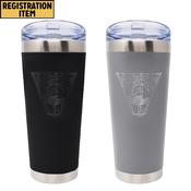 Stainless steel travel tumbler with a matte gray or black finish.