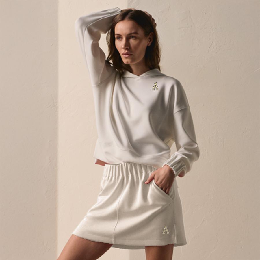 Part of our Spring 26 Peter Millar Knit Wear collection, this hoodie is modern and flattering in a tri-blend fabric. Cinched cuffs and an open hem with side vents for extra movement across the hips. Inspired by the 50th anniversary of women at West Point, the collection is both beautiful and well made. Features the iconic Classic A art on left chest. Sizes XS-XL.