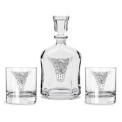 Set includes one decanter and two glasses.