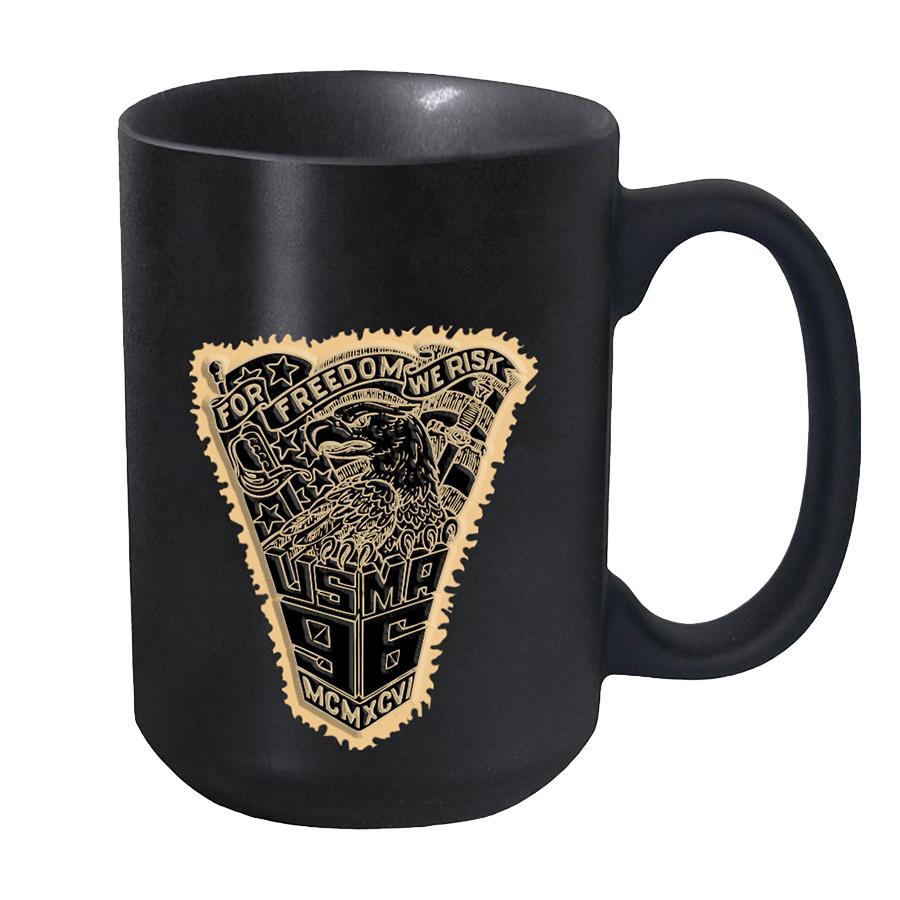 Etched matte mug with 1996's crest. Holds 16 ounces of your favorite hot beverage in a vintage, rough edged style. Additional shipping charges may apply for four or more mugs. Due to the nature of the etching on ceramic, final art may vary and be lighter than what is shown here. Always best to hand wash any decorated mug or glass.