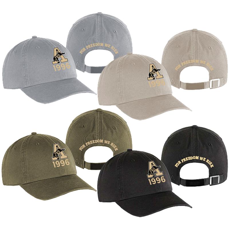 A low profile, unstructured ball cap with an adjustable back closure. Art is designed for the Class of 1996 with the Kicking Mule over 1996 on front and the class motto across the back.