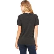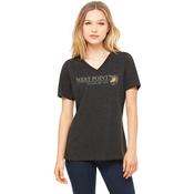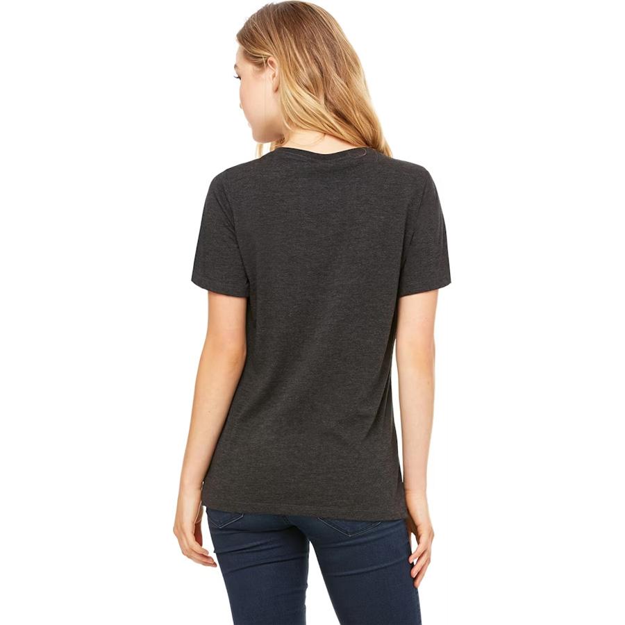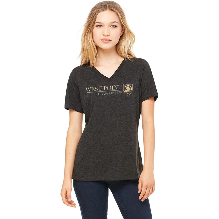 Soft, tri-blend fabric with a custom 1976 design. Ladies' short sleeve, v-neck style in sizes XS-3XL.
