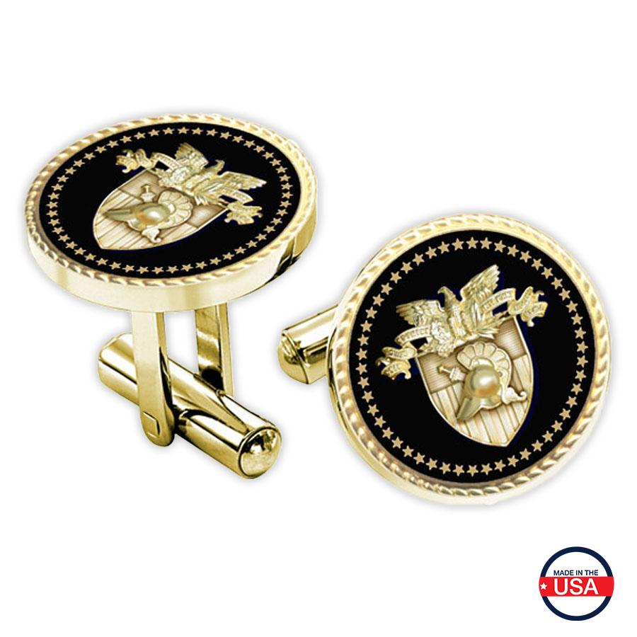 Classic sophistication - this pair of 7/8' round gold plated cufflinks features the West Point crest in incredible detail. Made in the USA.
