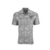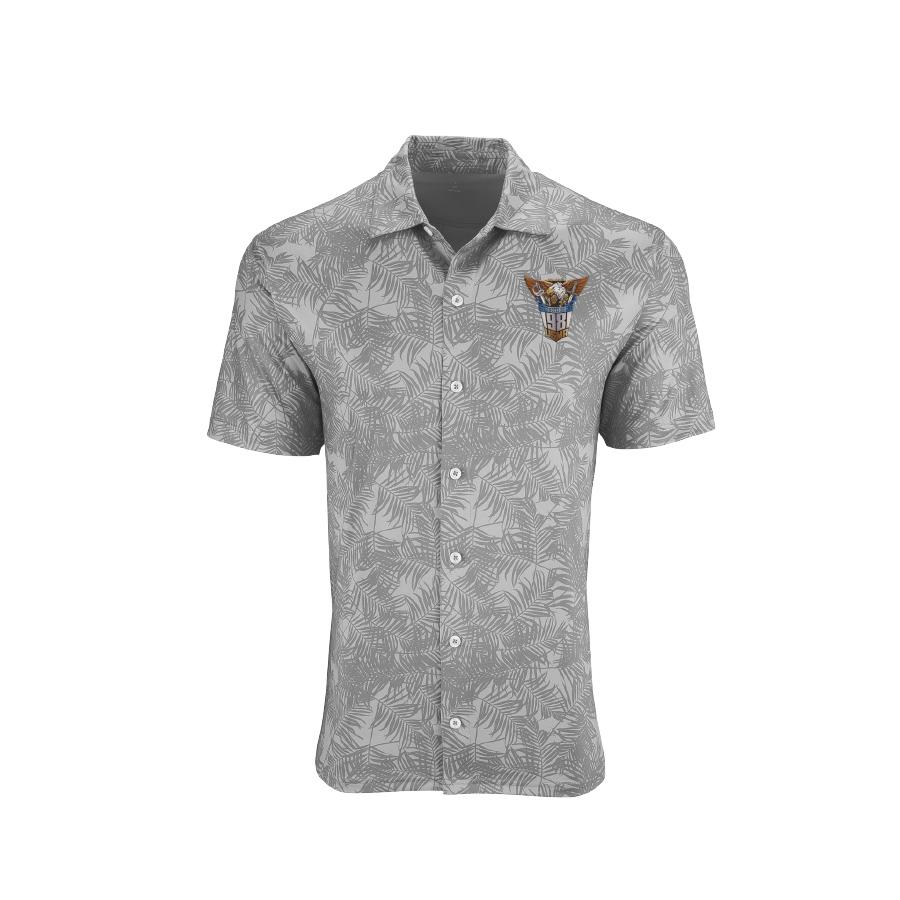 Give off a vacation vibe with this tonal palm-print, camp-style polo. UV protection, moisture wicking and antimicrobial properties make the perfect outdoor uniform. Decorated with the Class of 1981 Crest over the chest. 92% polyester/8% spandex.